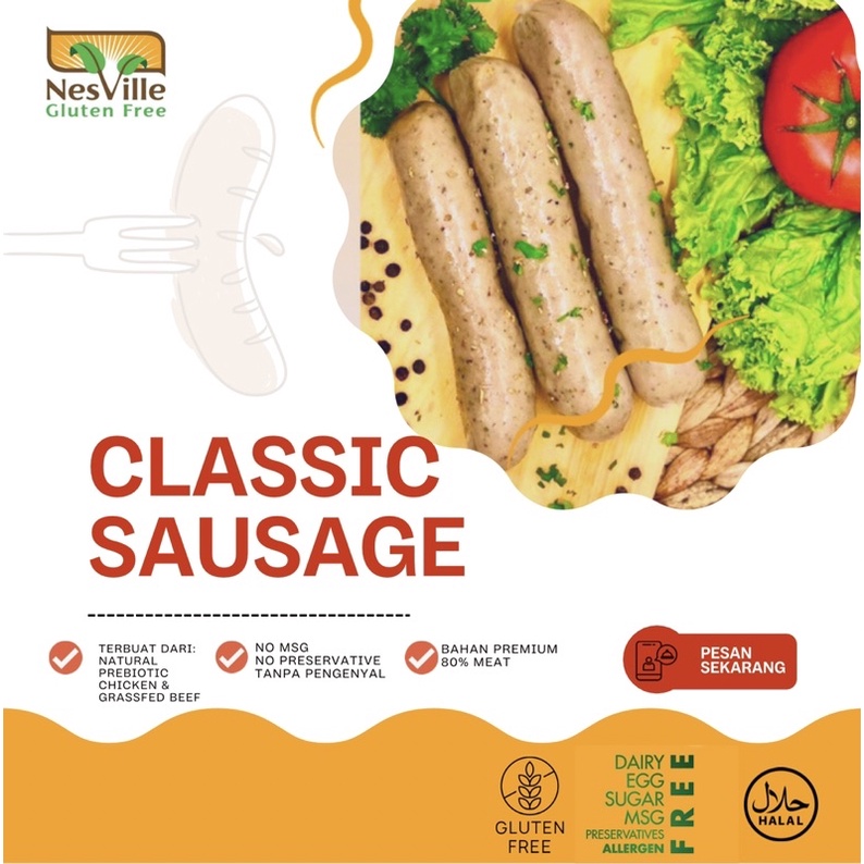Nesville Sosis Sapi Ayam Organik Gluten Free Sehat Mpasi / Allergen Free / Diet Autis / Classic Original Sausage
