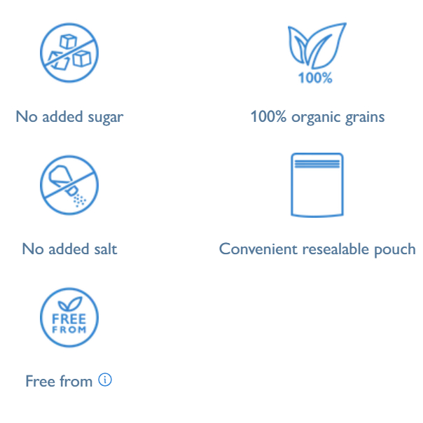 Baby Rice GOS 4+, Baby Porridge 5+, Pumpkin GOS 5+, Apple Cinnamon 6+, Milk & Vanilla 6+