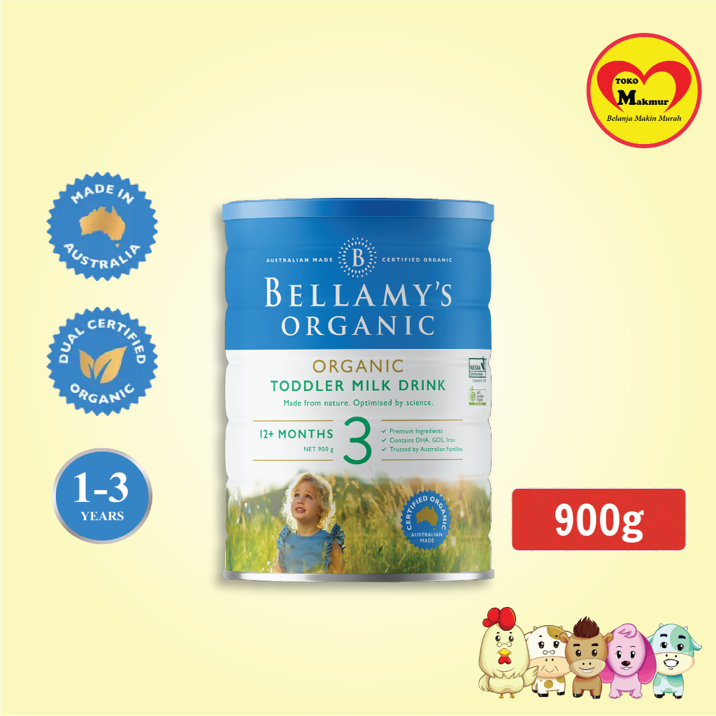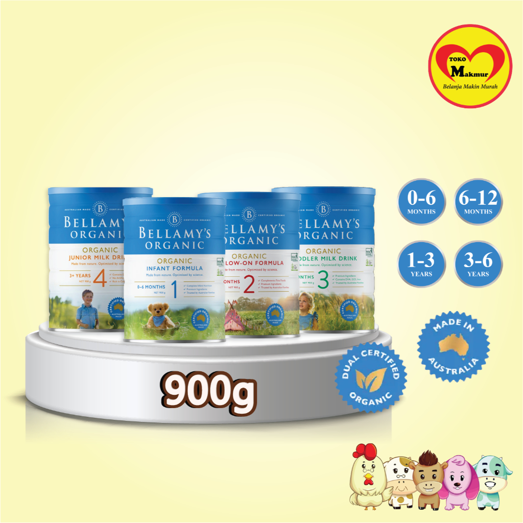 Bellamy's Organic Tahap 1 (0-6 Bulan) / Tahap 2 (6-12 Bulan) / Tahap 3 (1-3 Tahun) / Tahap 4 (3 Tahun Keatas) 900gr + Bu