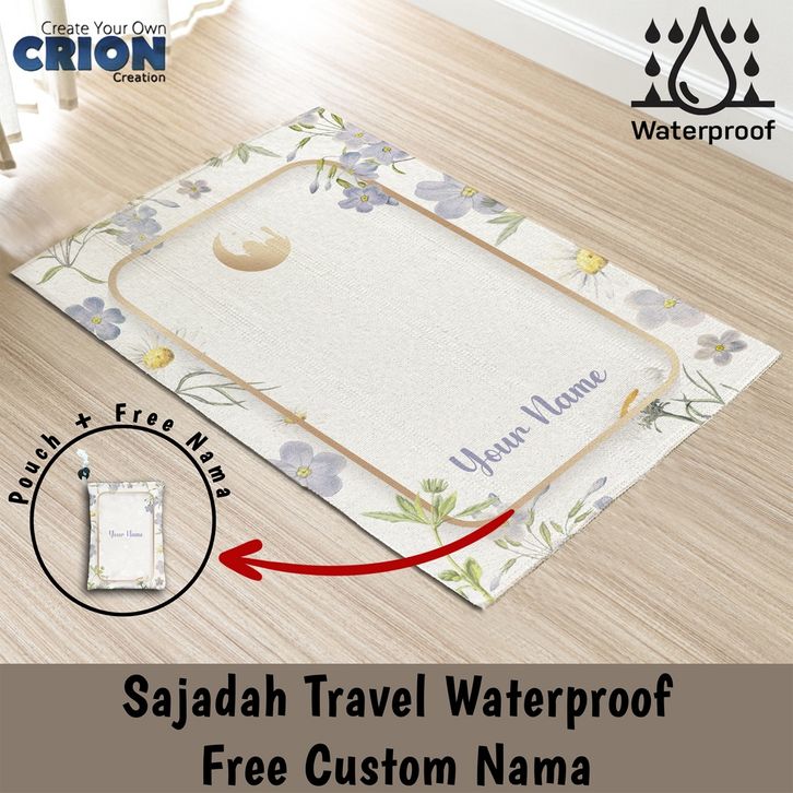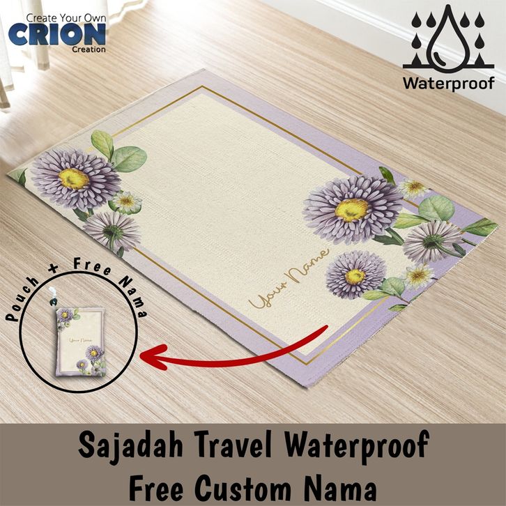 Sajadah Travel Waterproof Anak / Bisa Custom Nama / Flower frame - Sajadah Anak