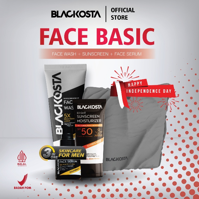 BLACKOSTA Package Face Basic Face Wash 100ML + Face Serum 20ml + Sunscreen Spf 50 30ml + FREE TOWEL