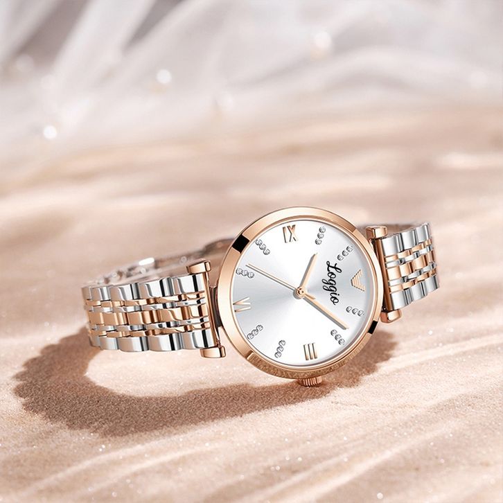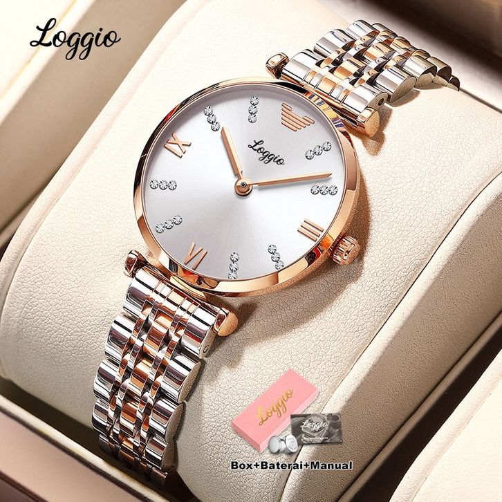 Loggio Jam Tangan Bulat Wanita Rantai Stainless Steel berrliaan Tahan Air Analog Watch For Women BY ORIGINAL PRODUCT