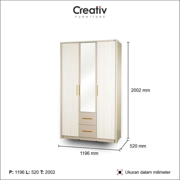 Lemari Pakaian 3 Pintu + 2 Laci Minimalis AUDI LP 300 Creativ