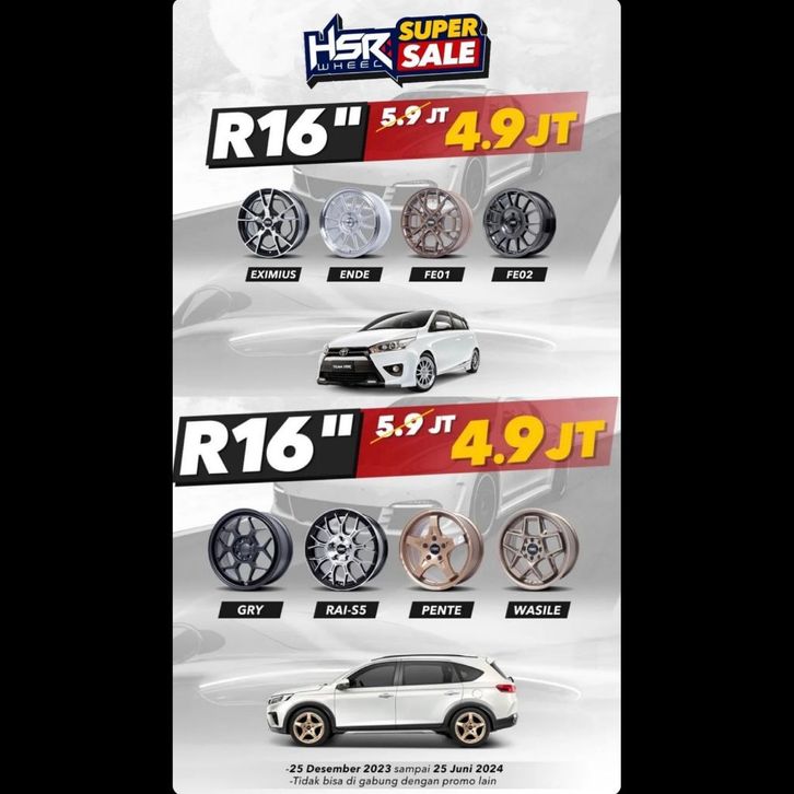 PROMO VELG HSR SUPERSALE RING 16 (FREE ONGKIR)