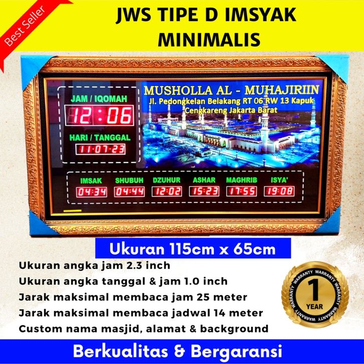 JAM MASJID DIGITAL BESAR / JADWAL SHOLAT DIGITAL BESAR Ukuran 115 cm x 65 cm Bisa Costum Nama