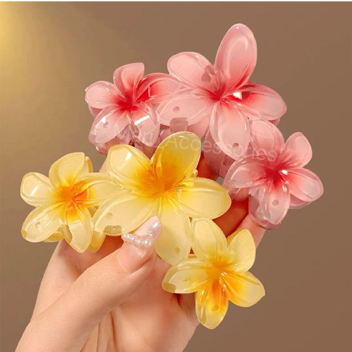 PROMO Jepit Rambut Motif 3 Bunga Kamboja Plumeria Akrilik Glossy | Jedai Salon Rambut Wanita Gaya Korea (12pcs /