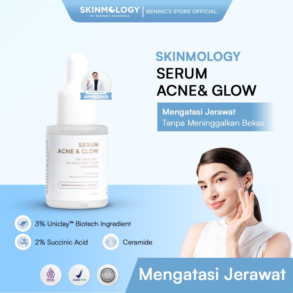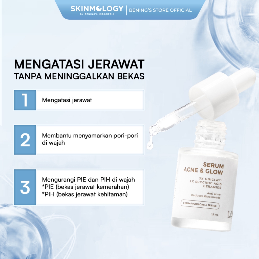 Skinmology By Bening's Clinic Indonesia - Serum Acne & Glow - Uniclay Ceremide - Mengatasi Jerawat Menyamarkan Pori Por