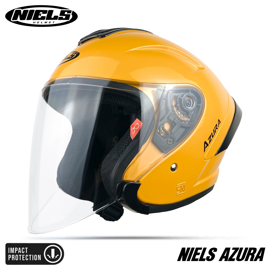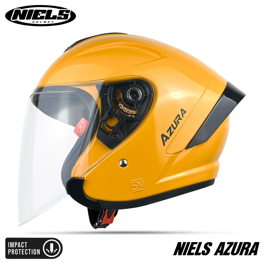 NIELS - Helm Half Face Azura Visor Bening Dewasa SNI Motorcycle Yellow