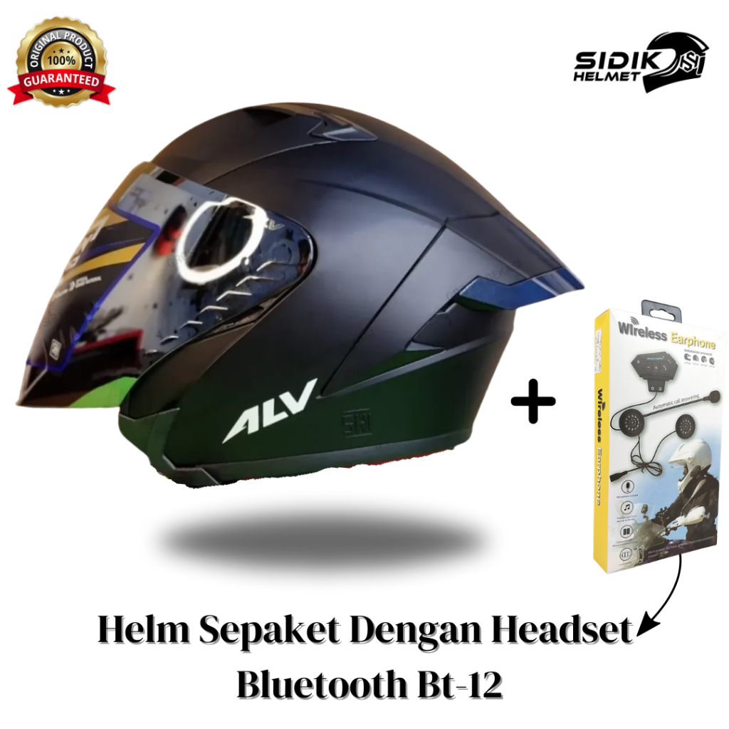 (SEPAKET)HELM ALV ULTRON PRO DENGAN HEADSET BLUETOOTH BT-12 100% ORIGINAL, HELM ALV FREE SPOILER Helmet Half face terba