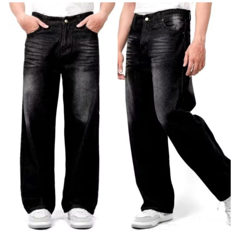 Celana Jeans Pria Wisker Gombrong Wide Leg Lebar Skena Black Wisker