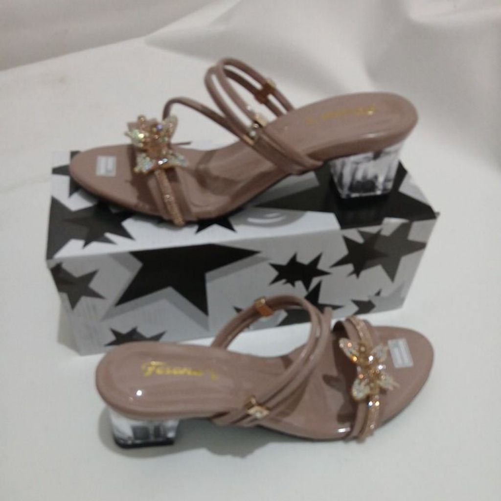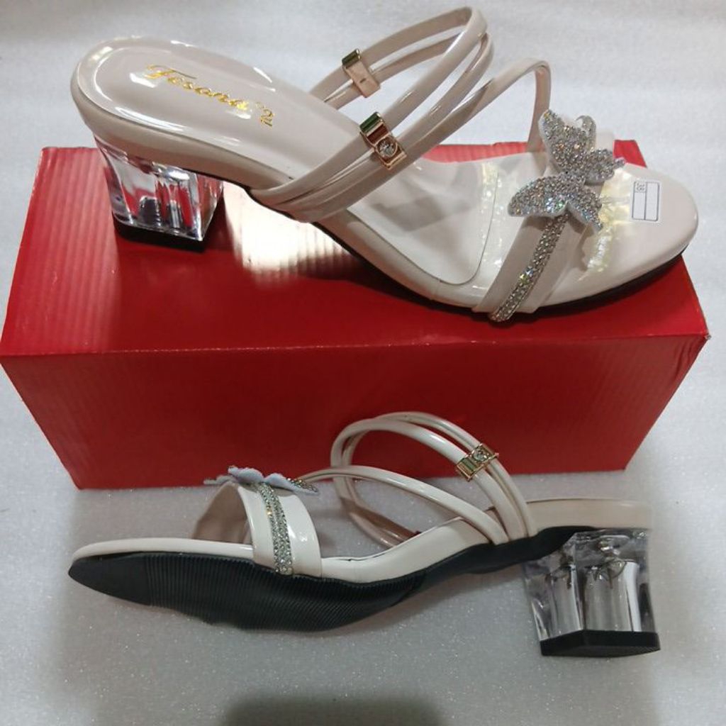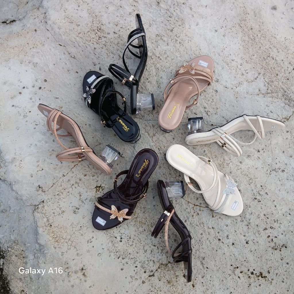 Sandal Wanita Hak Kaca 5cm Pariasi Kupukupu Glitar AD-02