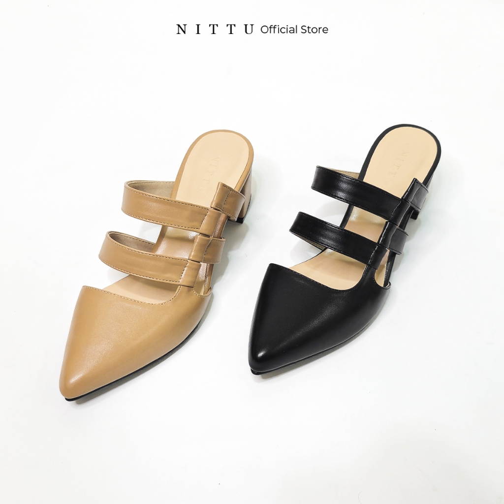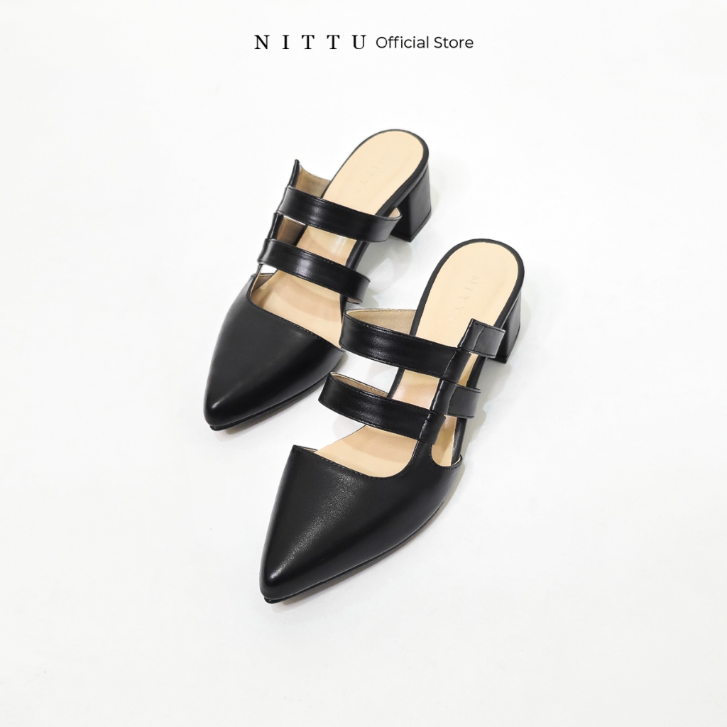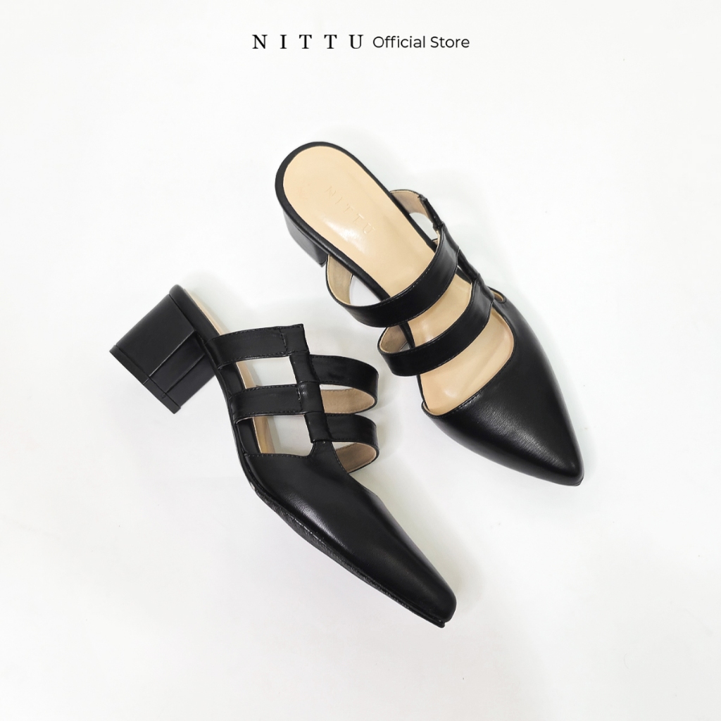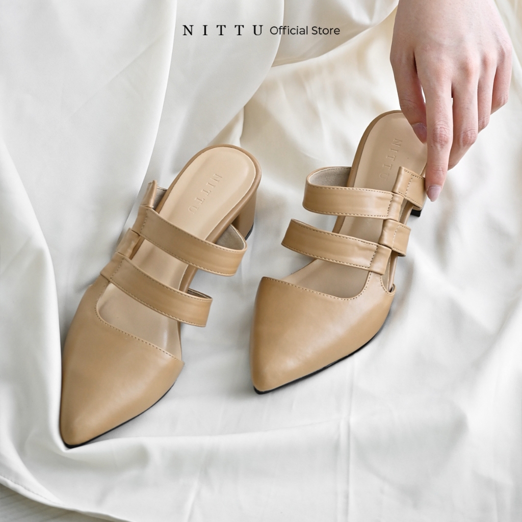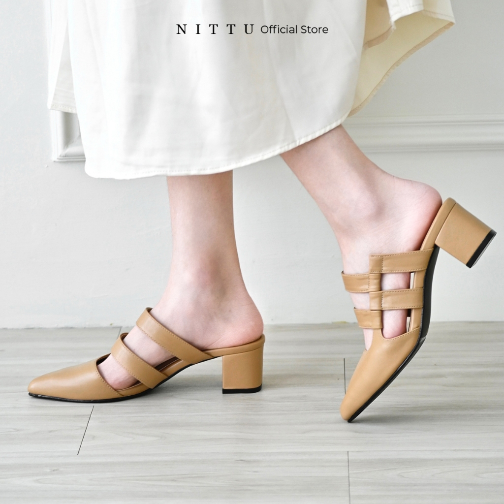 Nittu Sydney Sandal Wanita Mules Heels 5cm Kulit PU Elegan