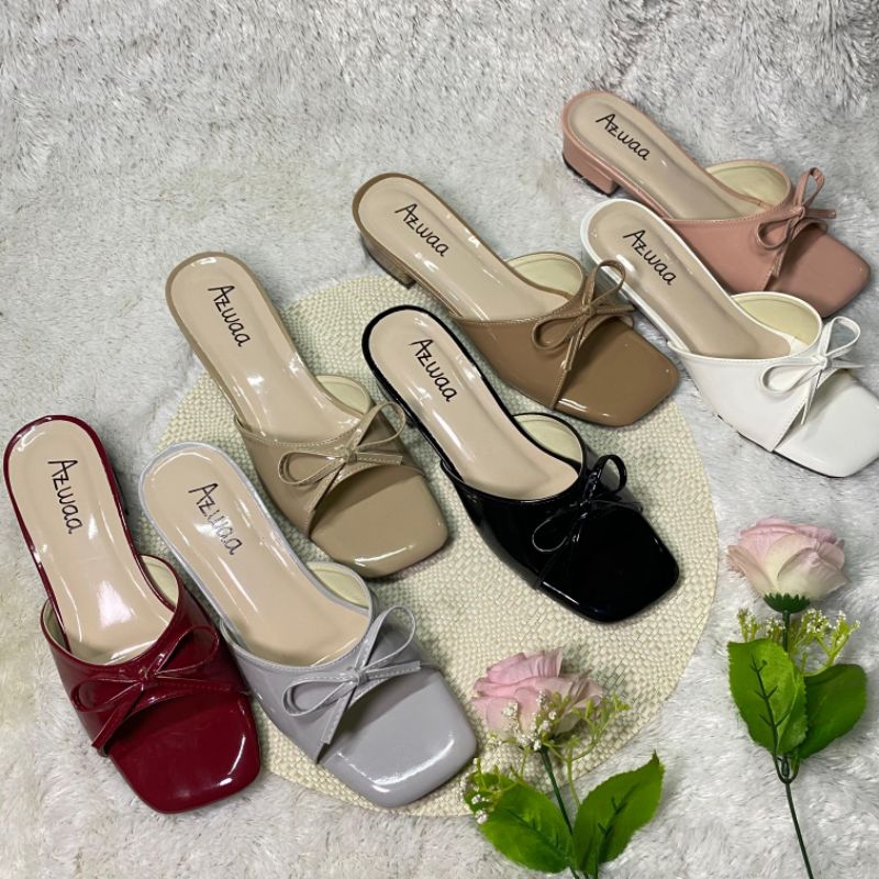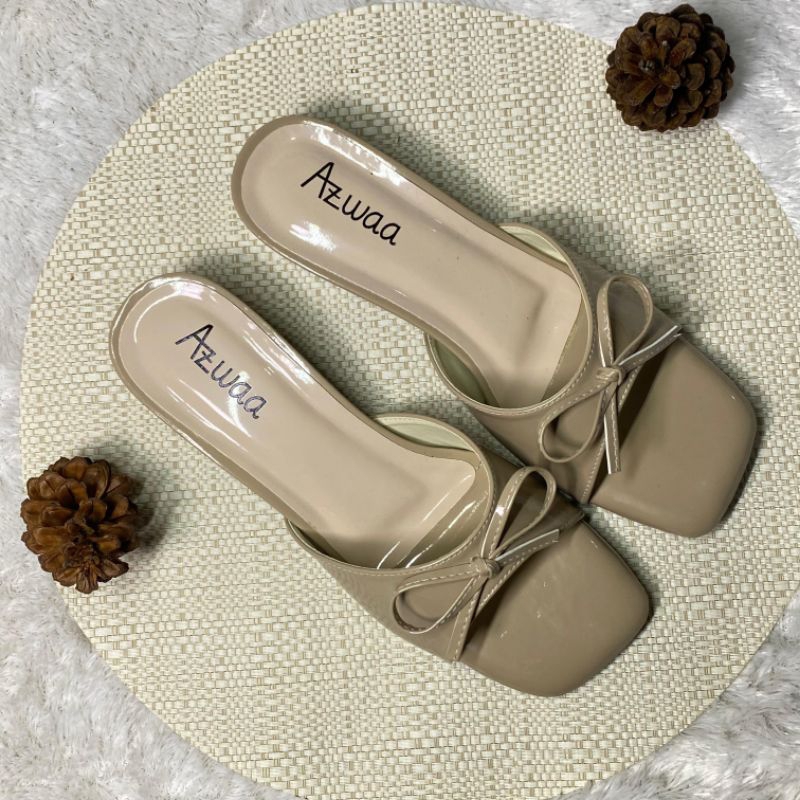 Sandal Wanita Hak Tahu 3cm – el Kekinian Korean Style Elegan | Selop Kokop Tali Pita – Azwaa Store