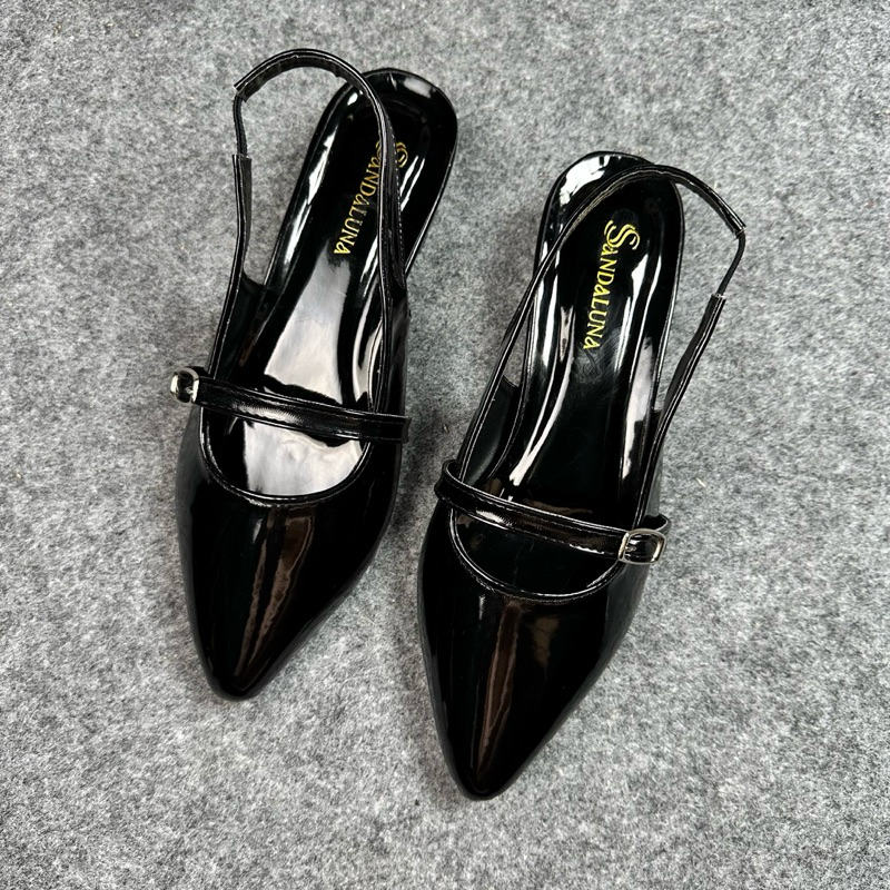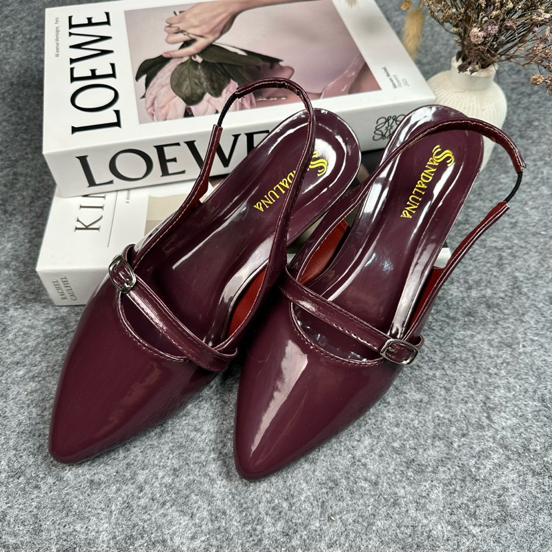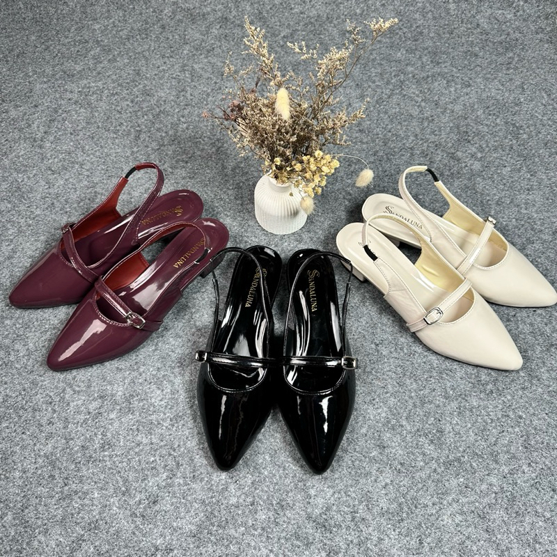 SANDALUNA - Sepatu Heels Wanita 3 cm Elegan Kekinian Terbaru Hak Tahu Sandal Mules Tali Gesper