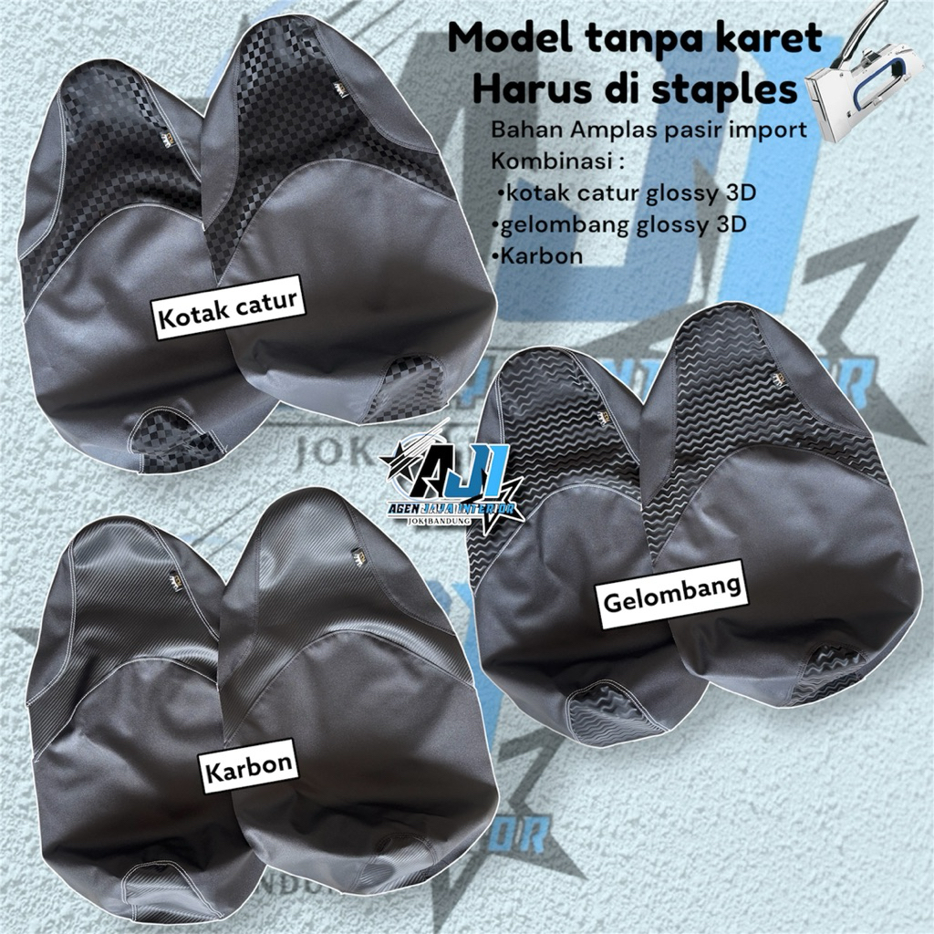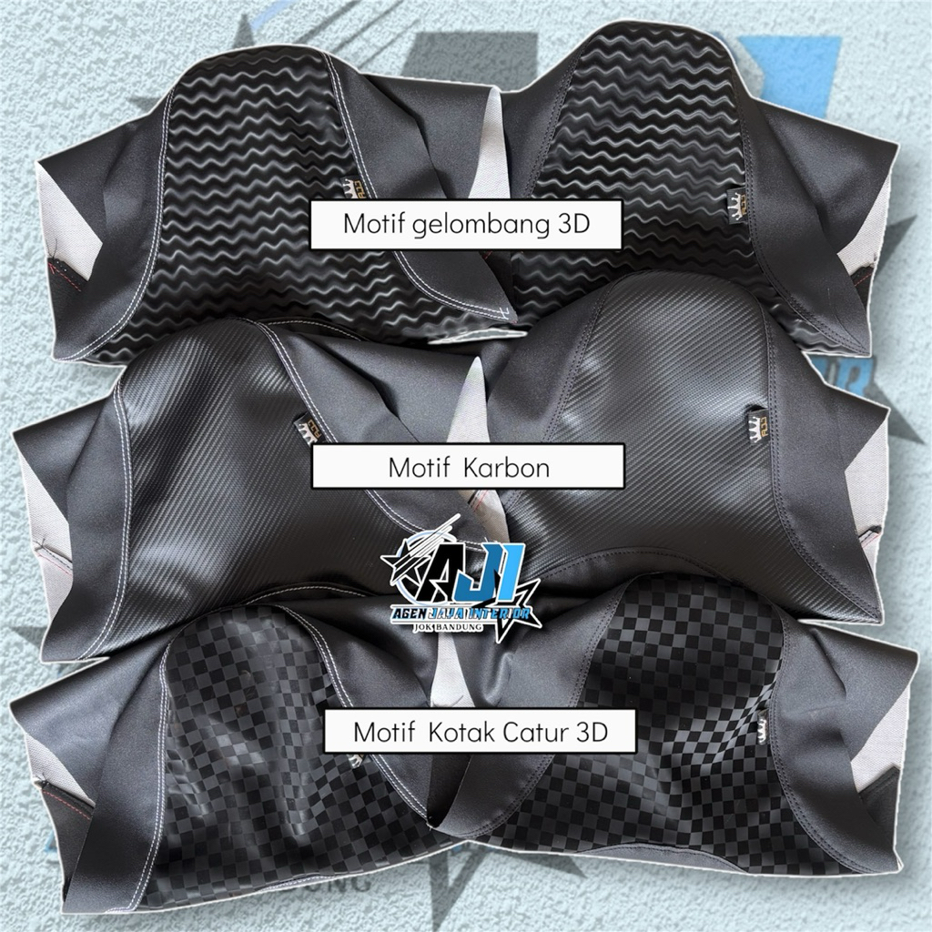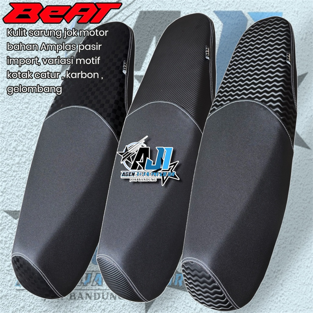 sarung kulit jok motor BEAT bahan amplas pasir model X RIDE, 3 KOMBINASI, kotak catur, gelombang, karbon