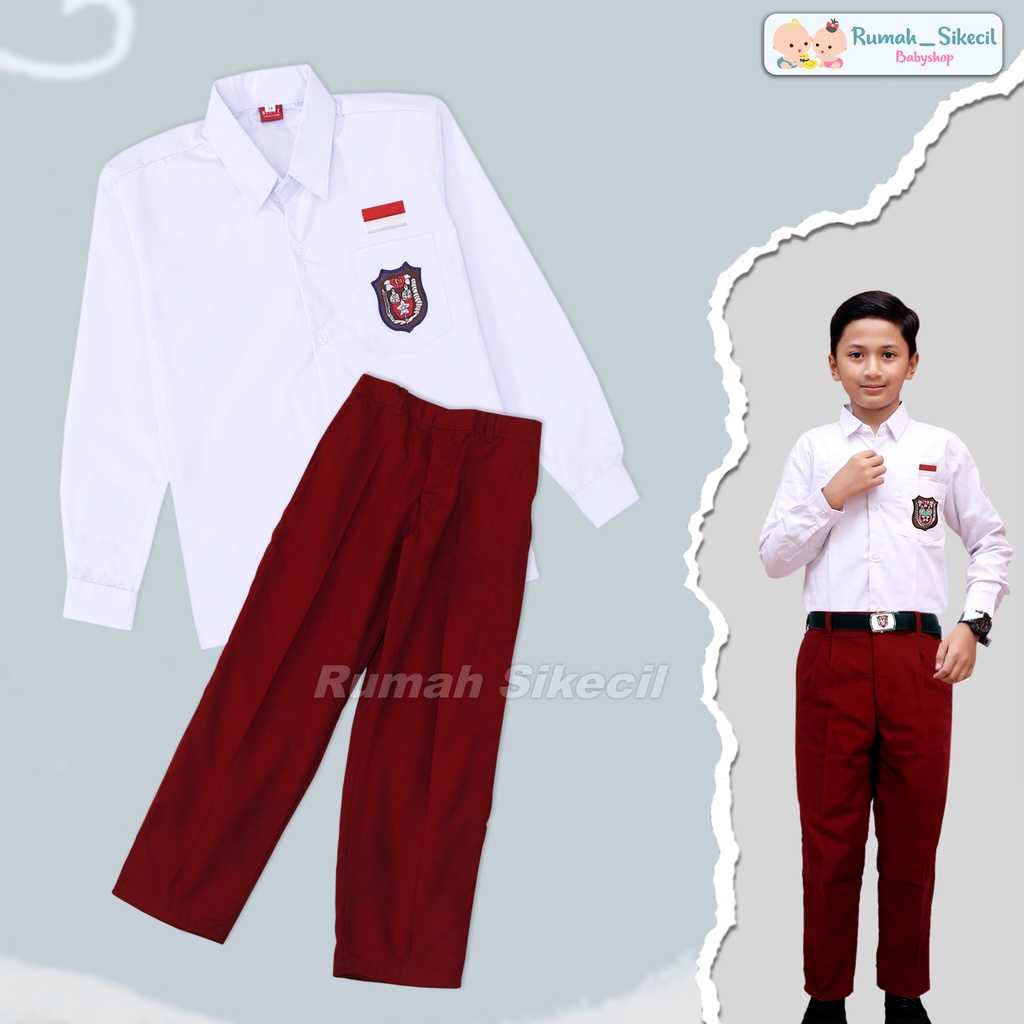 Setelan Baju Seragam Sekolah SD Merah Putih Baju Panjang Celana Panjang Laki Cowok Kelas 1 2 3 4 5 6 Bahan Katun Oxford Tebal Halus Adem