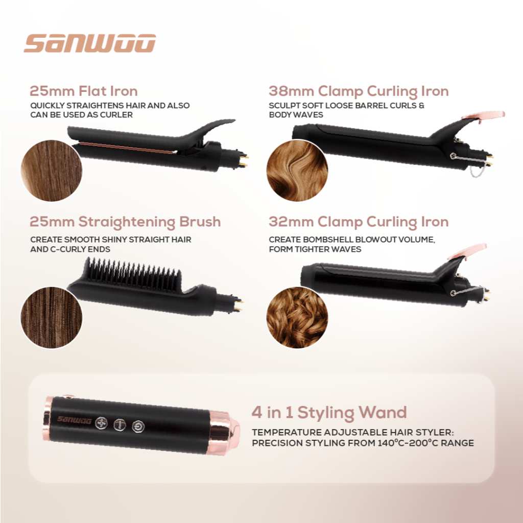 [Mall] SANWOO 4IN1 PROFESSIONAL MULTI STYLER MS-118/ CATOKAN PENGERITING DAN PELURUS RAMBUT
