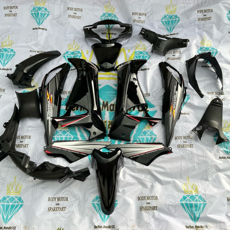 COVER FULL SETT BODY HALUS KASAR SUPRA X 125 OLD LAMA HITAM PLUS STRIPING MOTOR