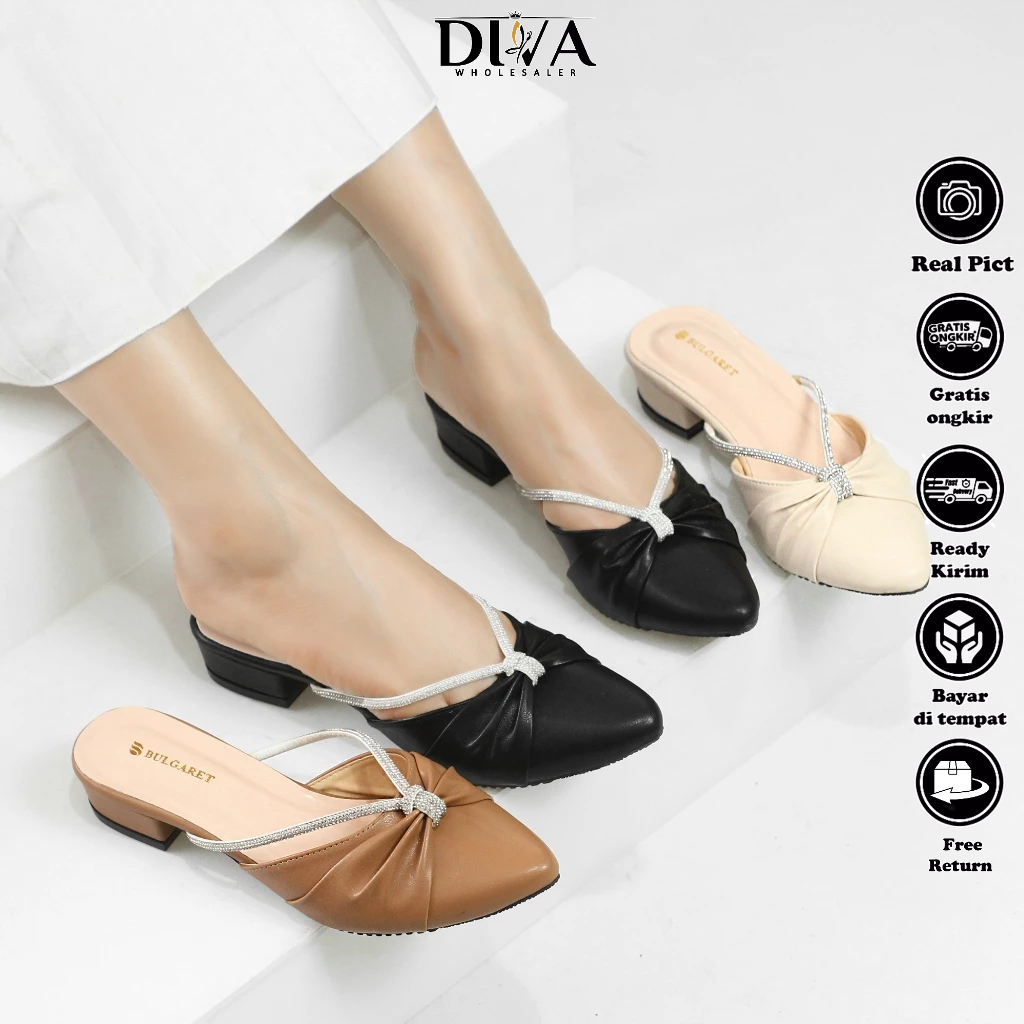 Sandal Wanita Heels Mules Hak 3cm Elegan Kekinian DN 11