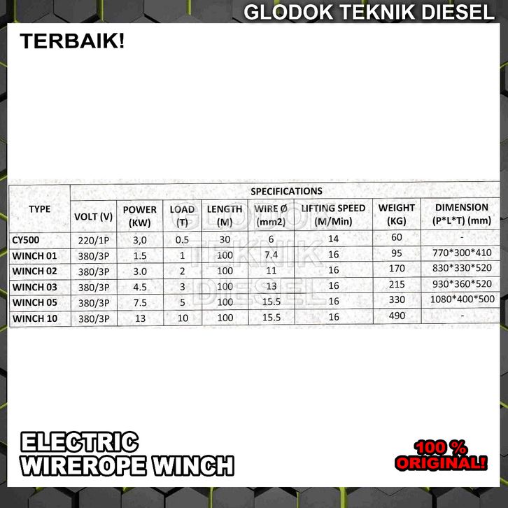 Electric Wire Rope Winch Hoist 1/2 | 0.5 Ton x 30 Meter 1 phase Wirerope 500 KG ORIGINAL TERBAIK