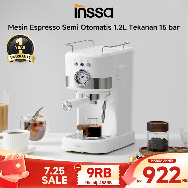 INSSA X Simplus Mesin Espresso Semi Otomatis Tekanan15bar Kapasitas Tangki 1.2L Tombol Temperatur