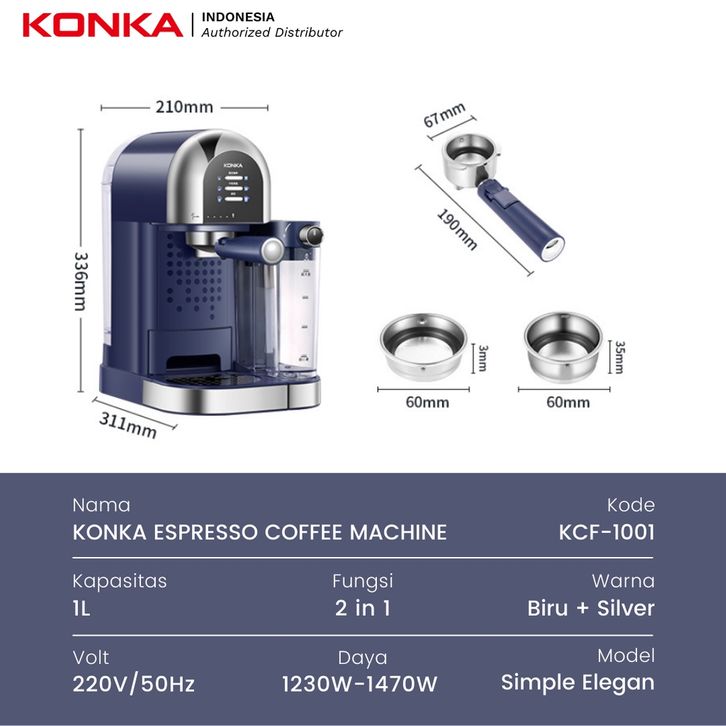 KONKA Mesin Kopi Espresso Coffee Machine Auto Milk Frother - KCF-1001