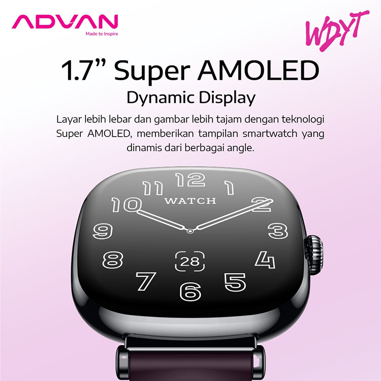 Smartwatch ADVAN WDYT 1.7" Super Amoled Smart Ai Assistant Bluetooth Call WaterProof IP68 Jam Tangan Android Pintar