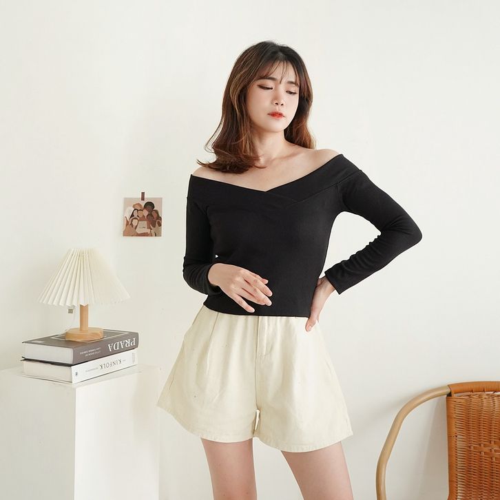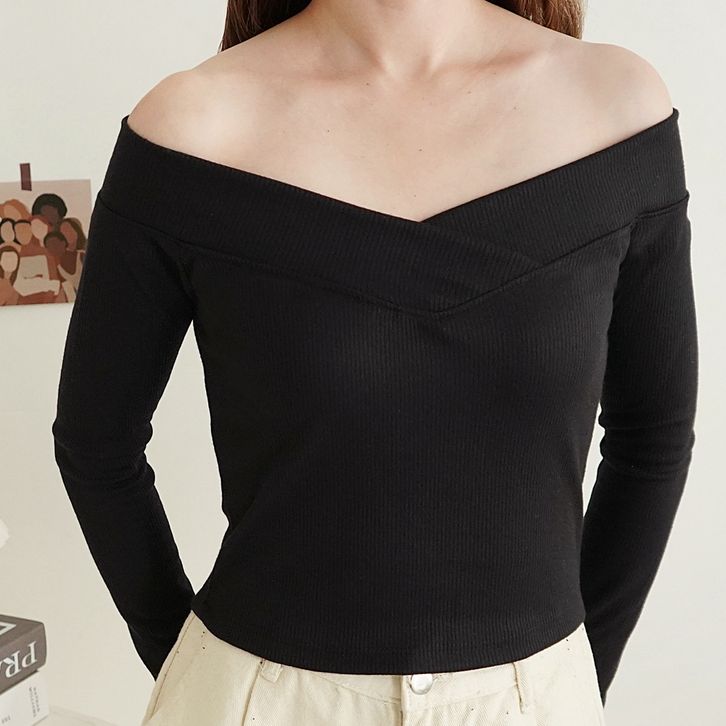 Crop Top Sabrina Longsleeve Crop Top Wanita Lengan Panjang Crop Top Korean Style Bahan Katun Premium