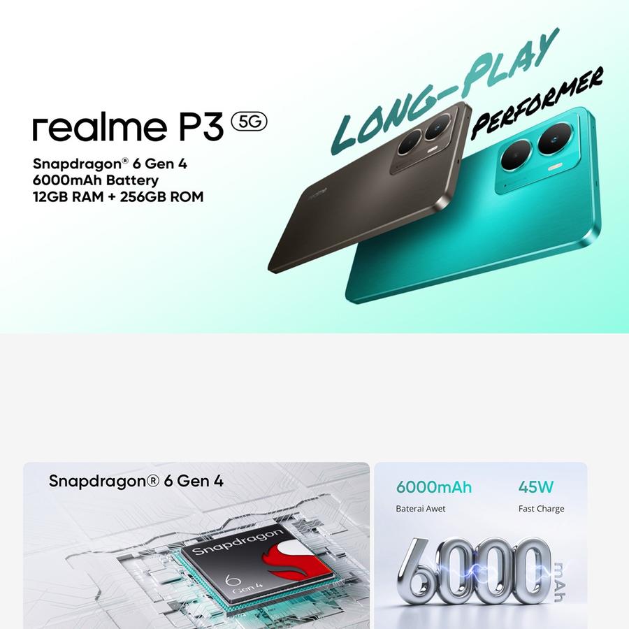 Realme P3 5G 12/256GB NFC - Snapdragon 6 Gen 4, 45W Fast Charge, 6000mAh Battery - realme p3