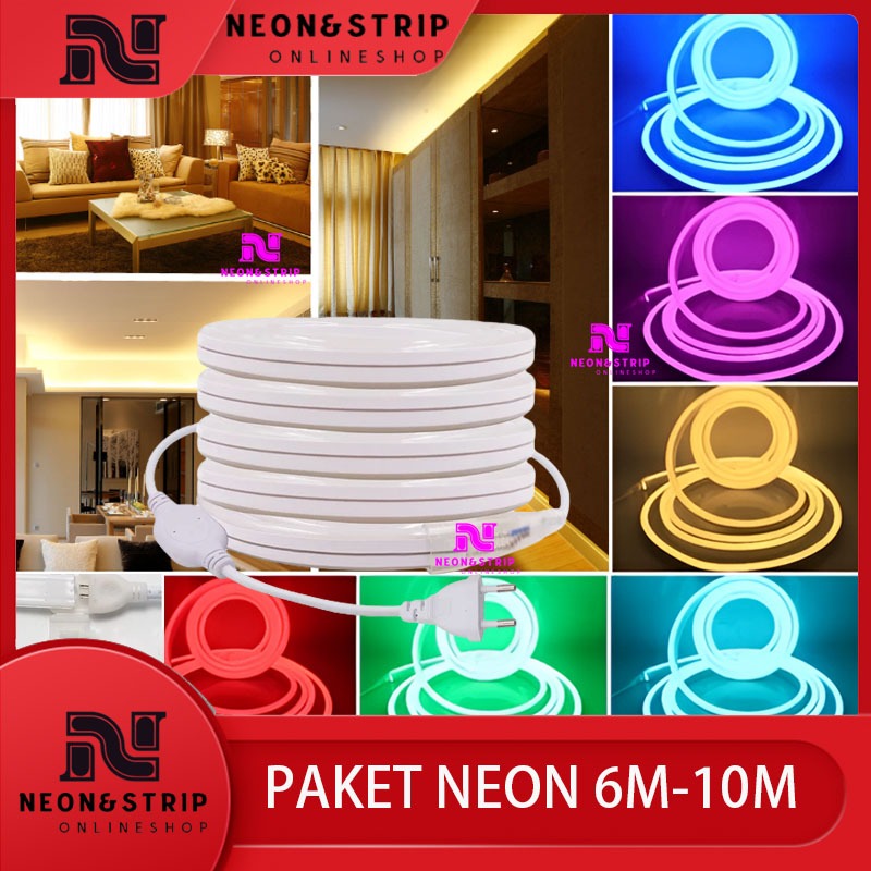 Paket Lampu Neon Flex 220v 6m 7m 8m 9m 10m 10 meter Led Selang Fleksibel 220v COLOKAN LANGSUNG