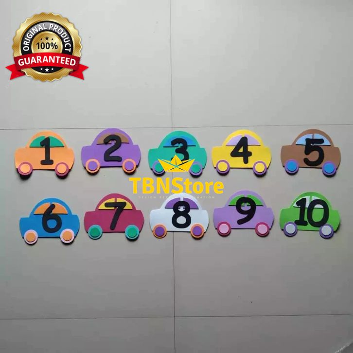 PROMO 1 Set Angka (1-10) Kendaraan Mobil Peraga Edukasi Hiasan Dinding Anak PAUD TK igicr