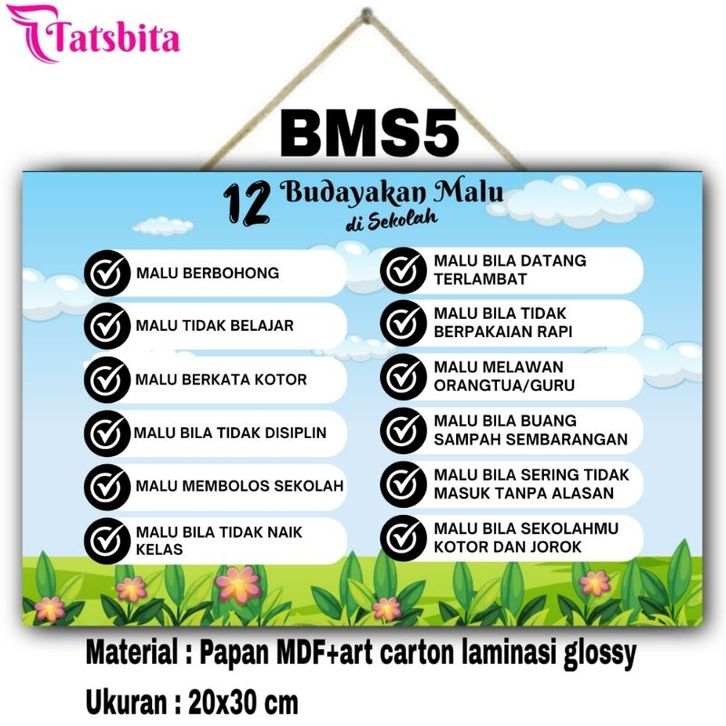 TERLARIS TATSBITA Pajangan Hiasan Dinding Dekorasi Wall Decor 12 Budayakan Malu Di Sekolah Untuk Kelas