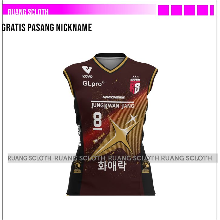 Jersey Voli Redspark Gold 2025 Gratis Pasang Nama dan Nomor Punggung