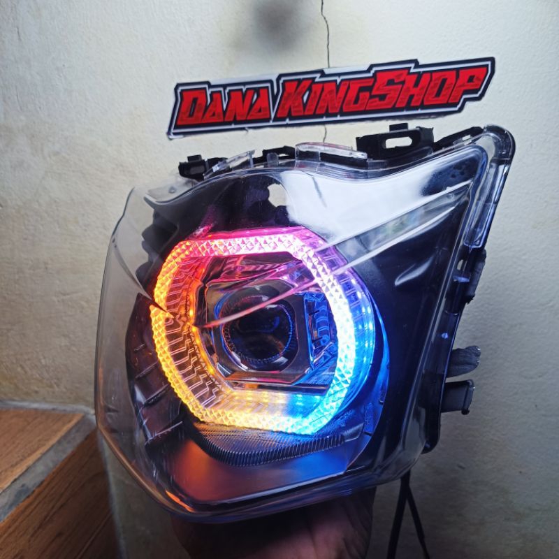 REFLEKTOR LAMPU DEPAN BEAT KARBU BILED CRISTAL RGB APLIKASI 55WATT SET REFLEKTOR