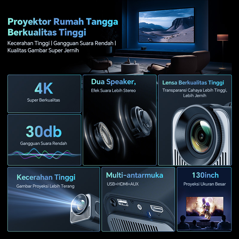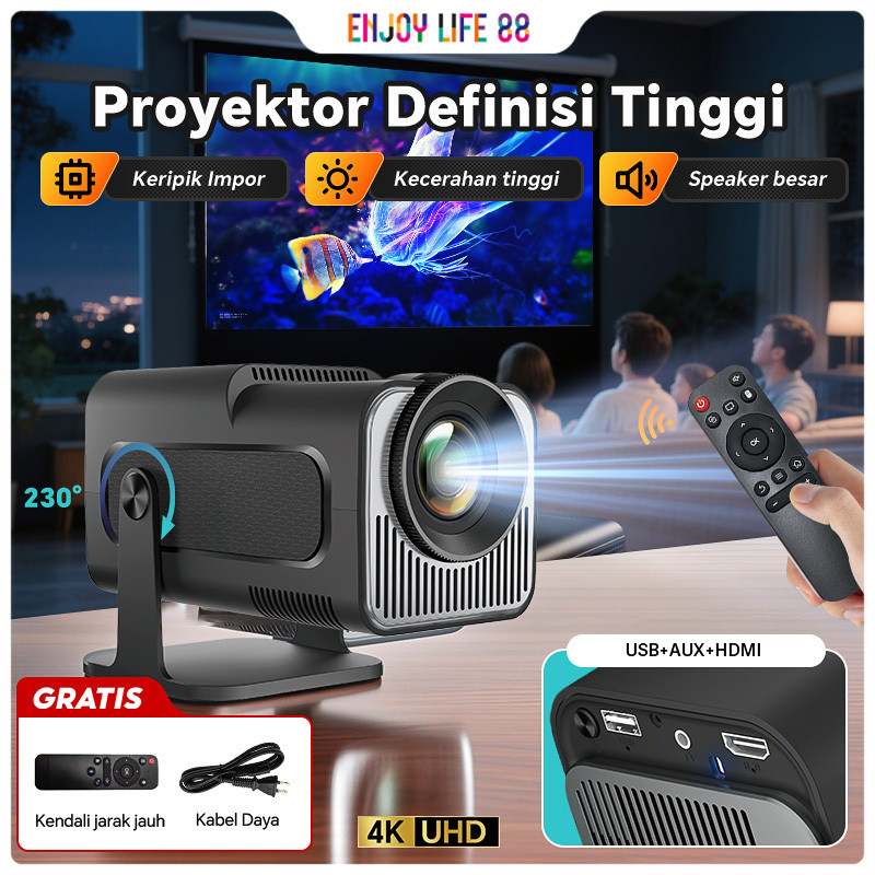 SMART PROYEKTOR HY320 4K UHD ANDROID 11.0 ASLI HDMI 1GB+8GB 1080P NATIVE PROJECTOR 10000 LUMENS WIFI 6 BLUETOOTH 5 PORTABEL DUDUKAN YANG DAPAT DISESUAIKAN 180° OTOMATIS HOME THEATER PROYEKTOR
