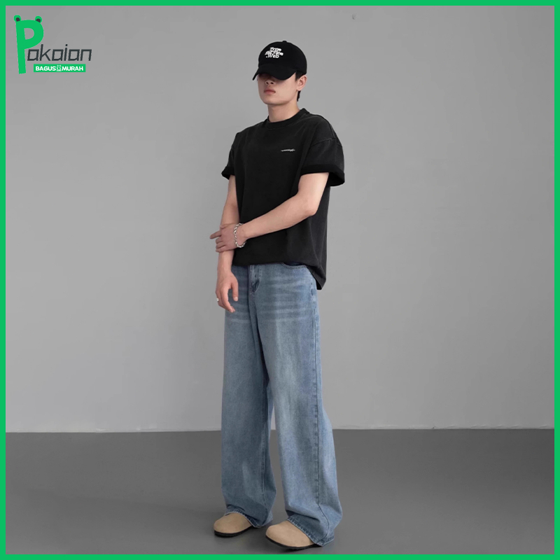 Jeans biru retro Celana Unisex Celana jeans pria celana panjang pria baggy jeans pria jeans kulot celana korean style pria celana gombrong pria celana skena manning jeans