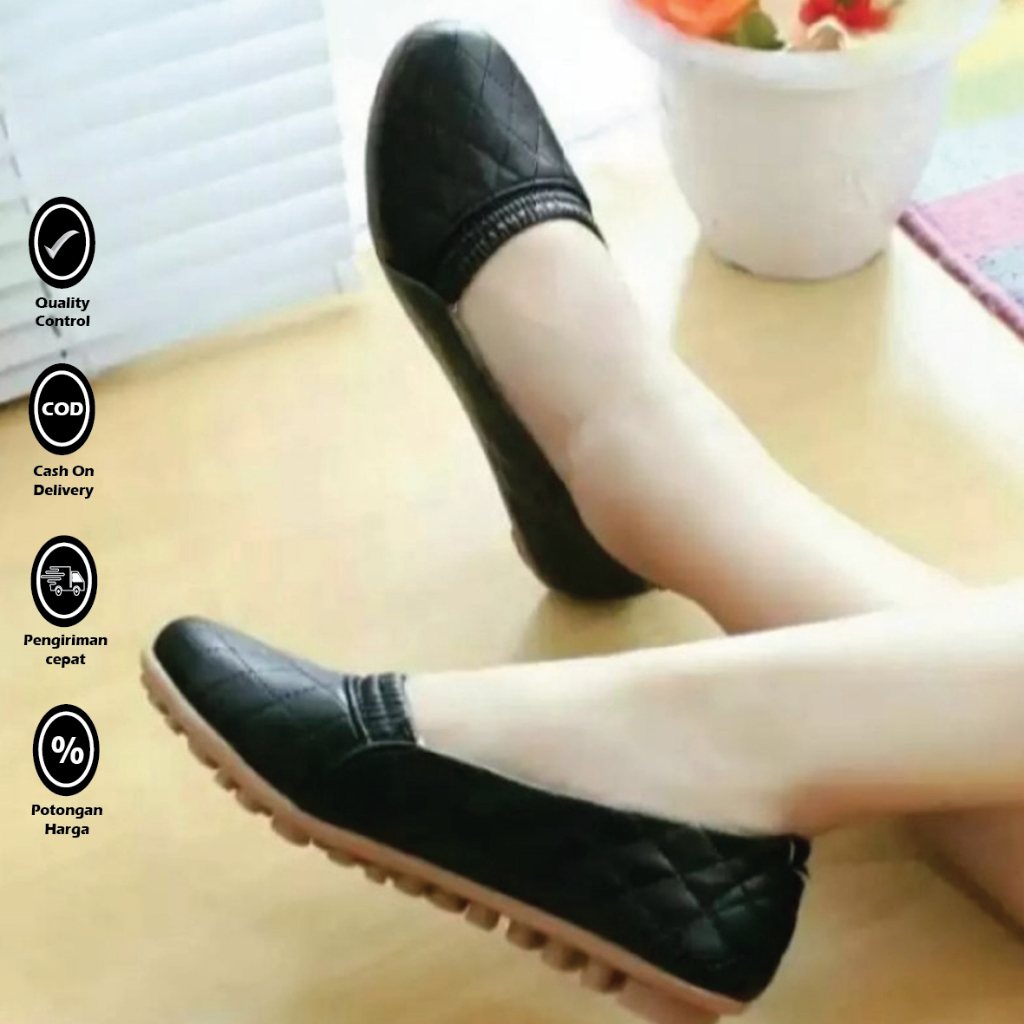 Sepatu Wanita Flatshoes Karet Anti Licin Elegan