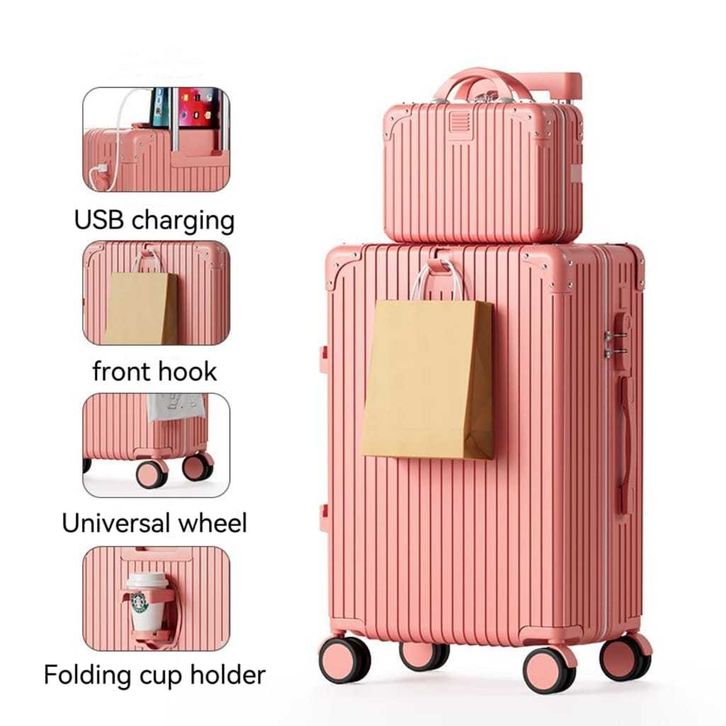 PROMO Forgui Koper mini wanita 18 inch koper kabin USB charger 20 inch Kapasitas besar 24 inch koper cup holder