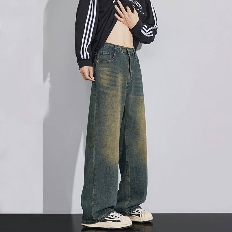 Thirteen Celana Skena Jeans Pria Retro Wide Leg Wisker Lebar Gombrong Skena Biru Rero Black Wisker pria loose fit jumbo big keren Bahan Denim