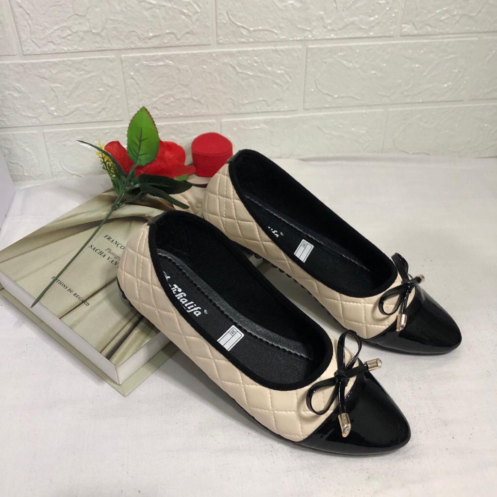 khalifa 01 flat shoes sepatu ballet ballerina wanita cantik premium original lentur sol karet insole empuk berbahan halu