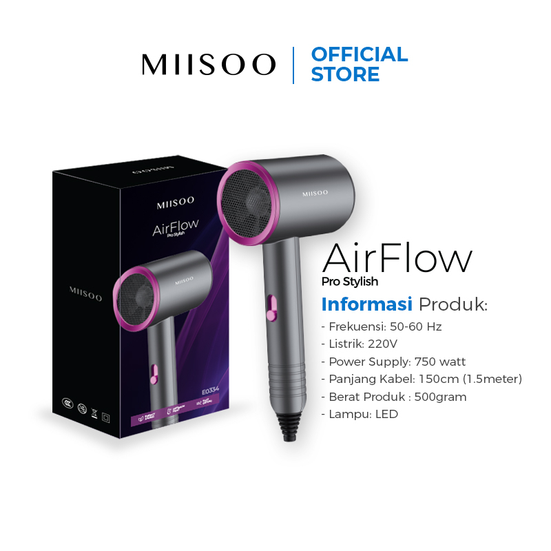 [Mall] MIISOO HAIR DRYER AIRFLOW EASY STYLISH IONIK BLACK PURPLE DRYER SALON PENGERING RAMBUT/HAIR DRYER RAMBUT