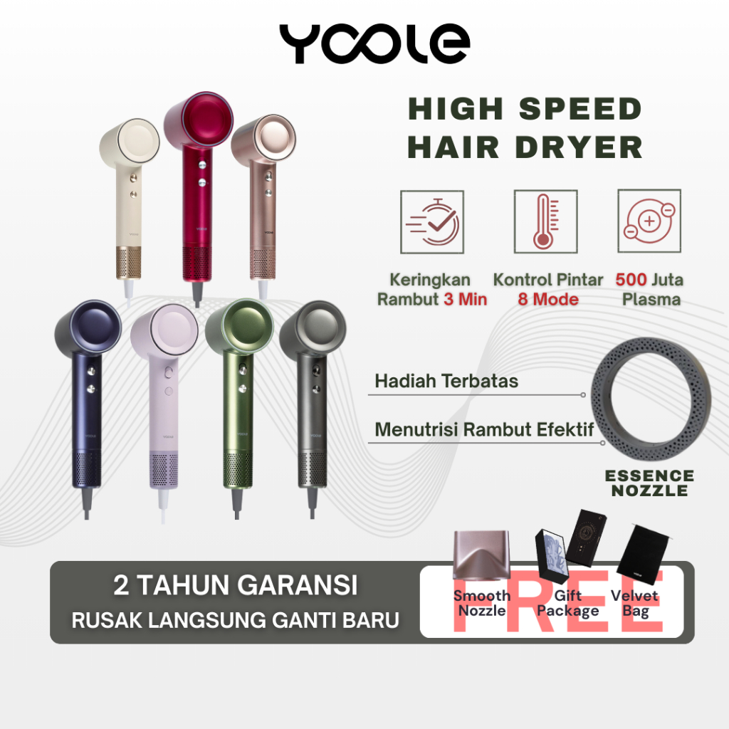 [Mall] [READY STOK] YOOLE HIGH SPEED HAIR DRYER S+ FAST DRYING 3 MENIT | PENGERING RAMBUT 500 JUTA ION PLASMA | 8 MODE