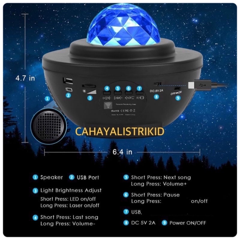 LAMPU PROYEKTOR DENGAN SPEAKER LANGIT MALAM BINTANG 2IN1 GALAXY NEBULA LAMP STARRY PROJECTOR LIGHT LAMPU TIDUR