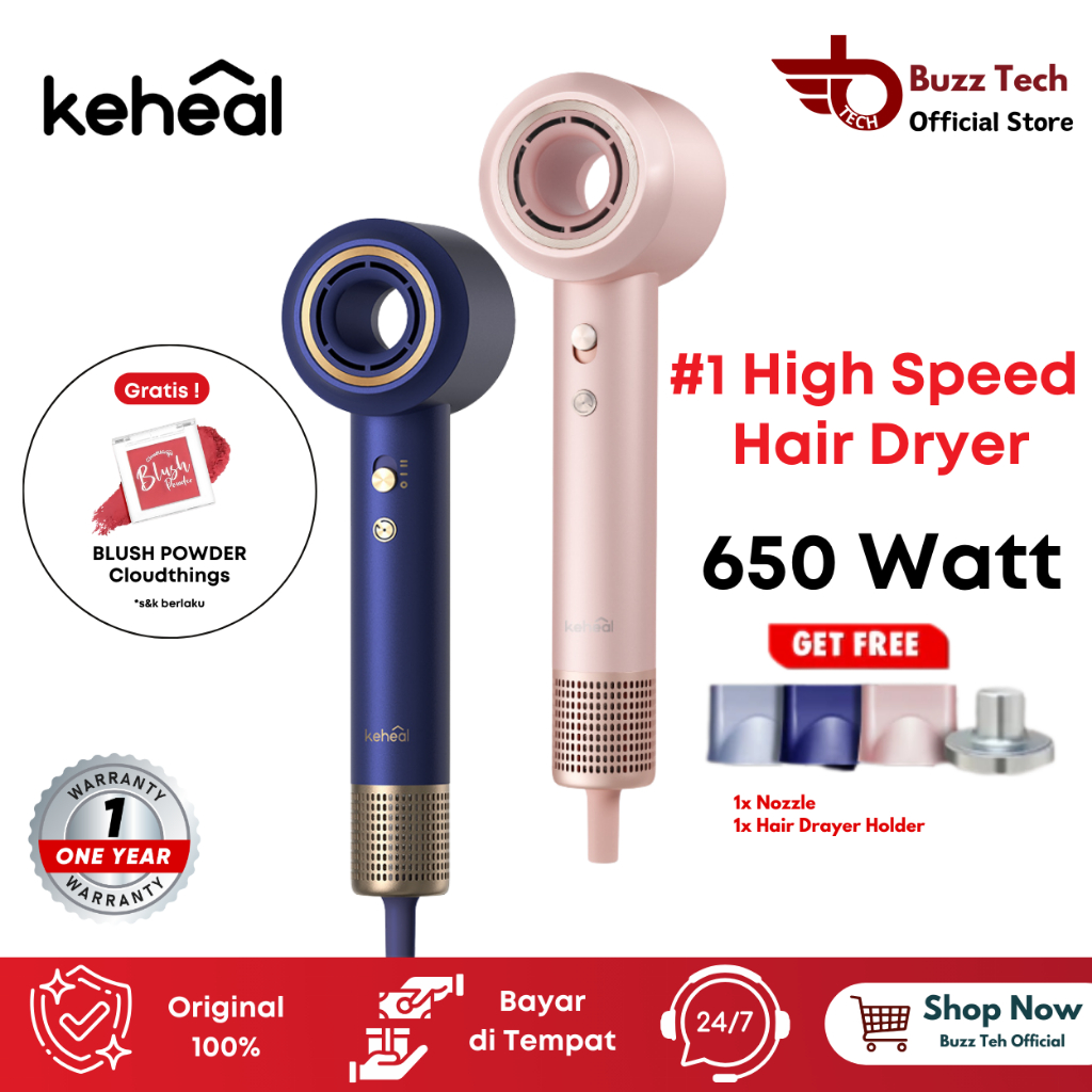 [Mall] (FREE BLUSH POWDER) KEHEAL - HIGH SPEED HAIR DRAYER HC5P ULTRA HIGH SPEED HAIR DRYER NEGATIVE ION BRUSHLESS MOTOR FAST DRYING LOW NOISE TEMPERATURE HAIR DRYER