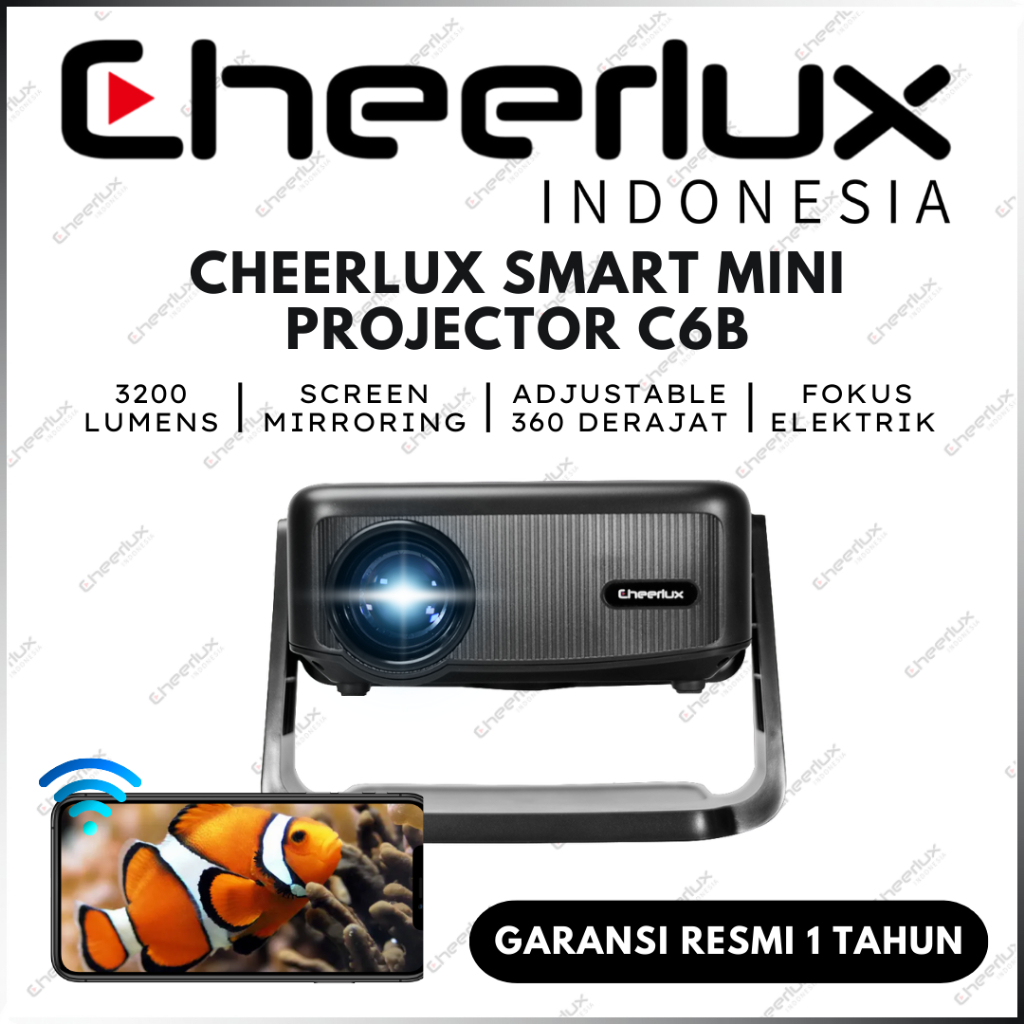 PROYEKTOR CHEERLUX C6B ANDROID WIFI MIRRORING KE HP 3200 LUMENS 1080P TERDAPAT HANDLE 360 ROTATING ELEKTRIK FOCUS