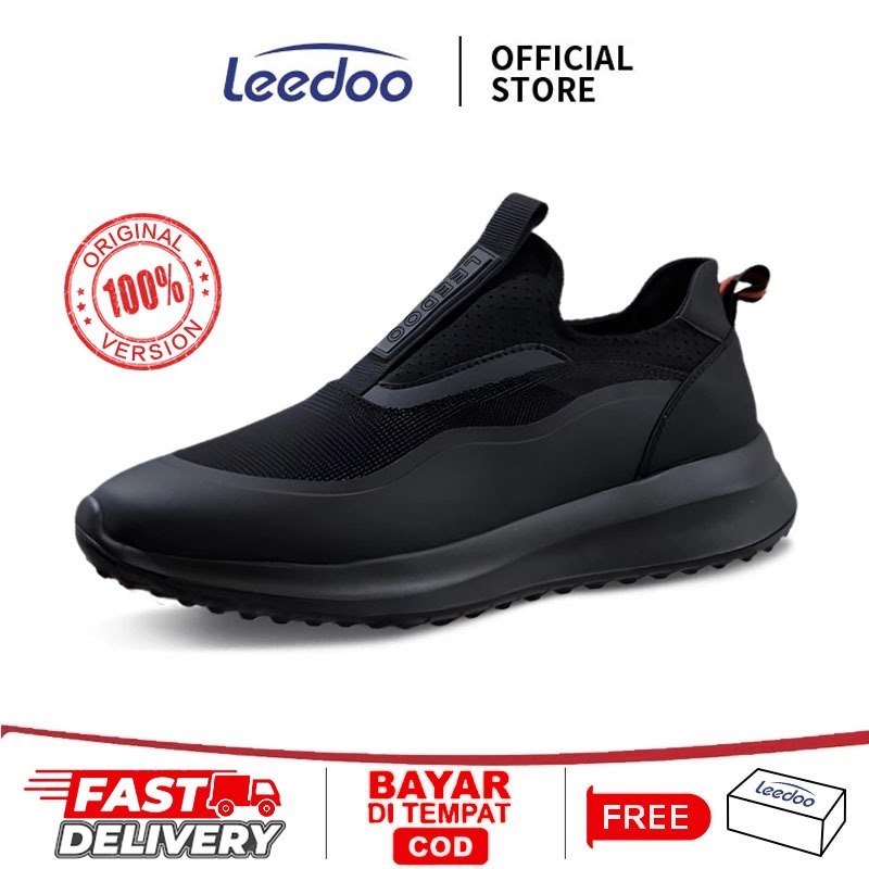 Gratis Ongkir Leedoo Sepatu Sneakers Cowok Sepatu Slip On Pria Pria Sepatu Hitam MR713 Sepatu Olahraga Pria Keren