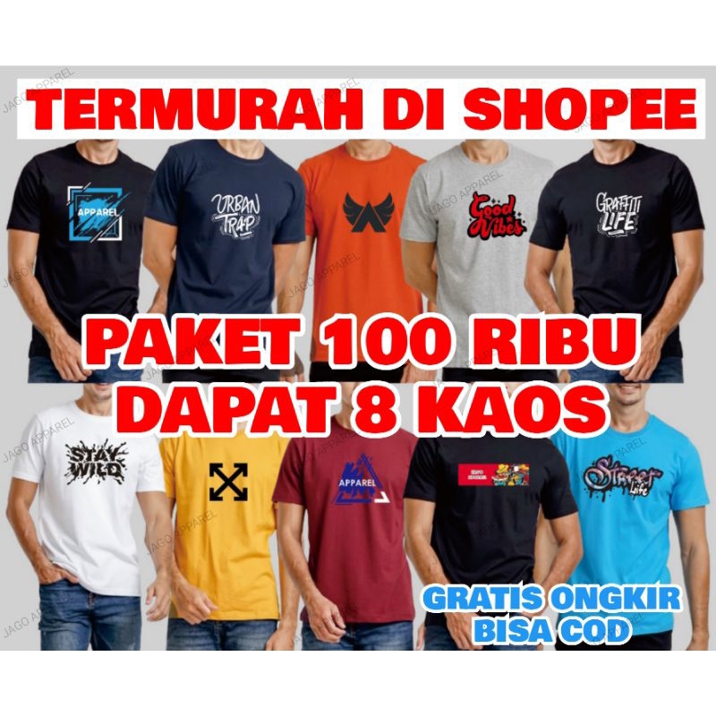 KAOS DISTRO 100 RIBU DAPAT 8 PCS KAOS DISTRO OBLONG PRIA DAN WANITA
