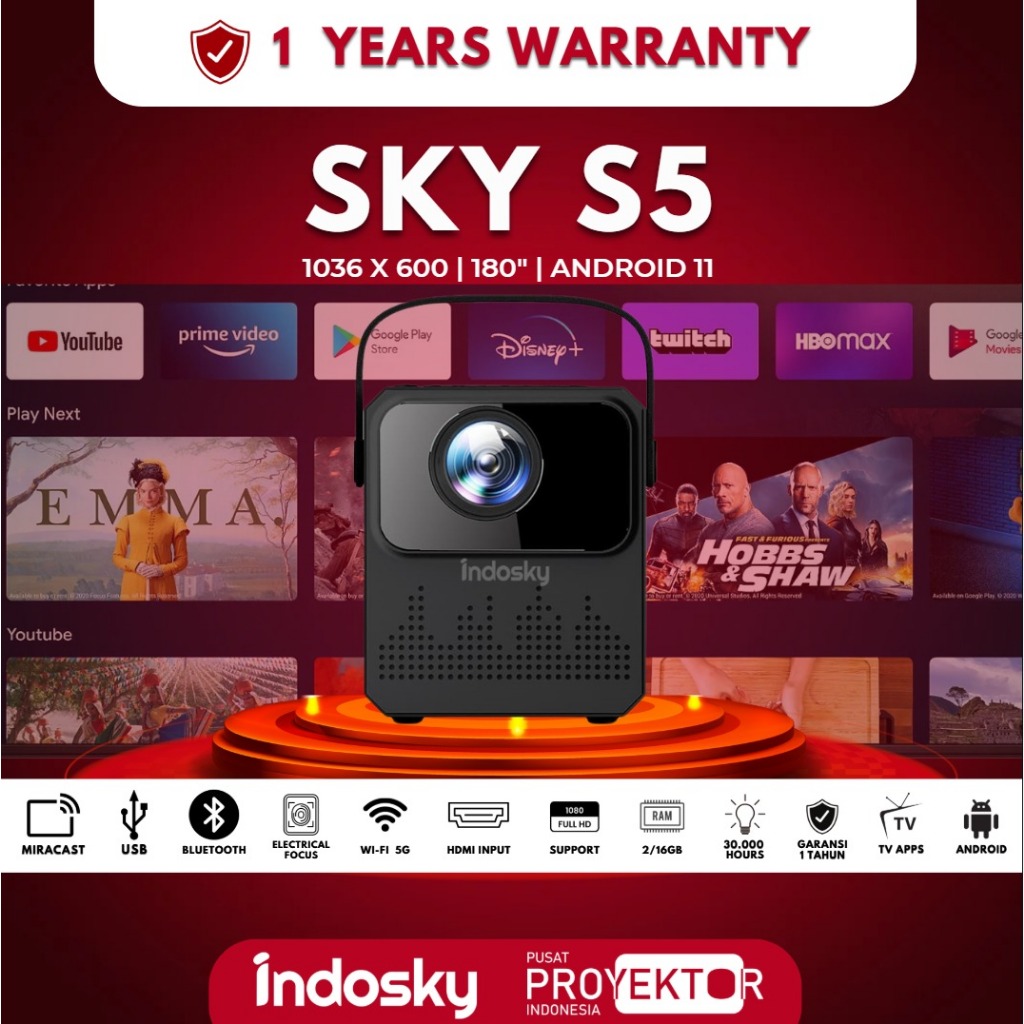 PPI - SKY S5 PRO - SMART PROYEKTOR HOME CINEMA | 180 ANSI | ANDROID TV | 150” DISPLAY