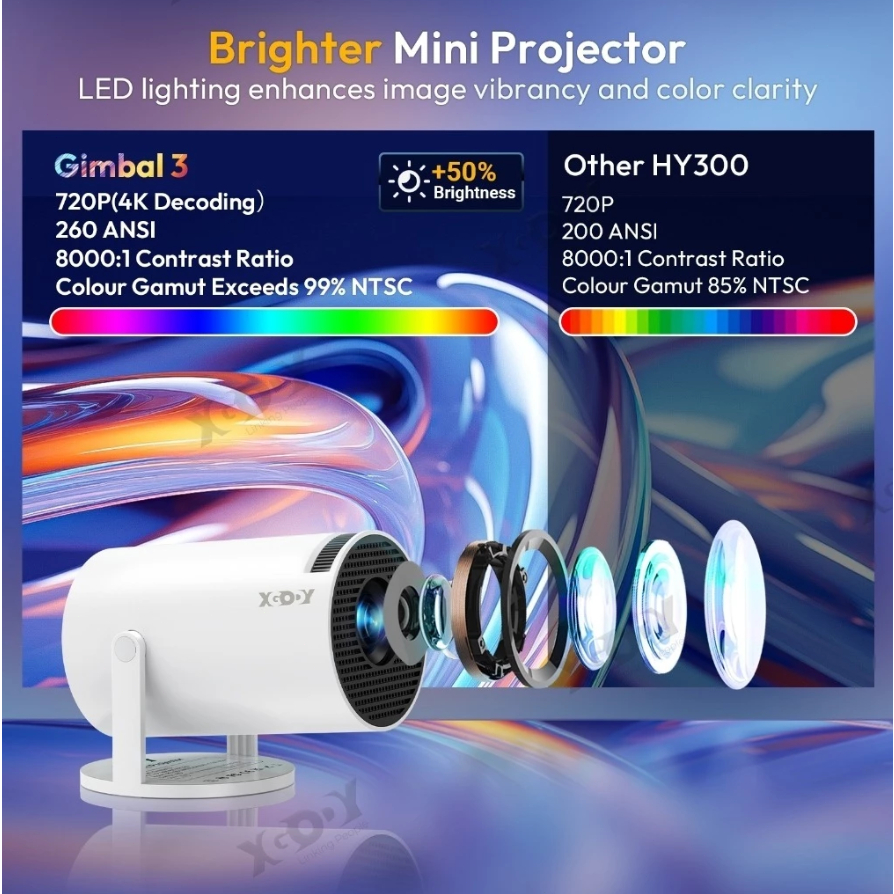 PROYEKTOR HY300 4K ULTRA HDMI 720P ANDROID 11.0 WIFI BLUETOOTH TELEPON WIRELESS SMART PROYEKTOR 8000 LUMENS PROJECTOR FLEKSIBEL LASER PORTABEL PROYEKTOR