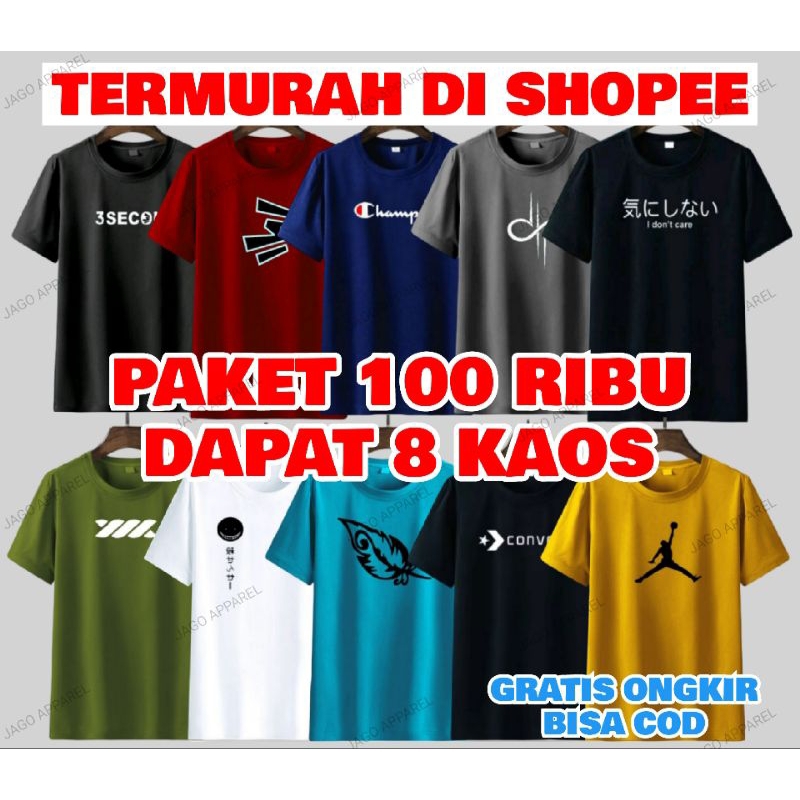 100 ribu dapat 8 pcs kaos motif distro keren masa kini / baju kaos pria